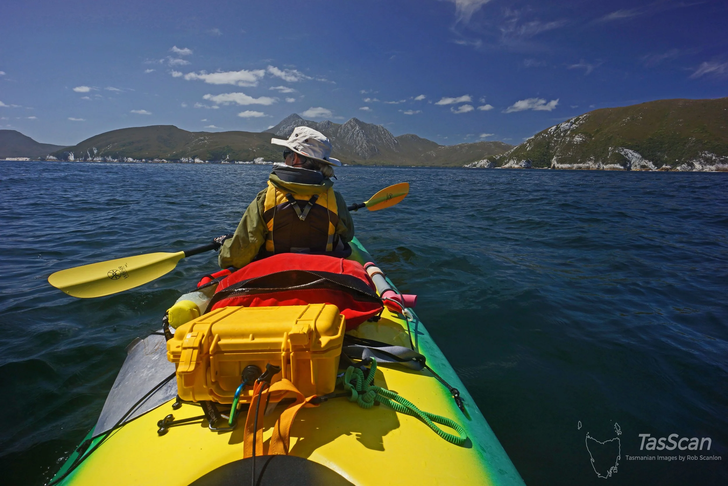 Inside the Breakseas and Port Davey with view of Mt. Stokes in the distance.