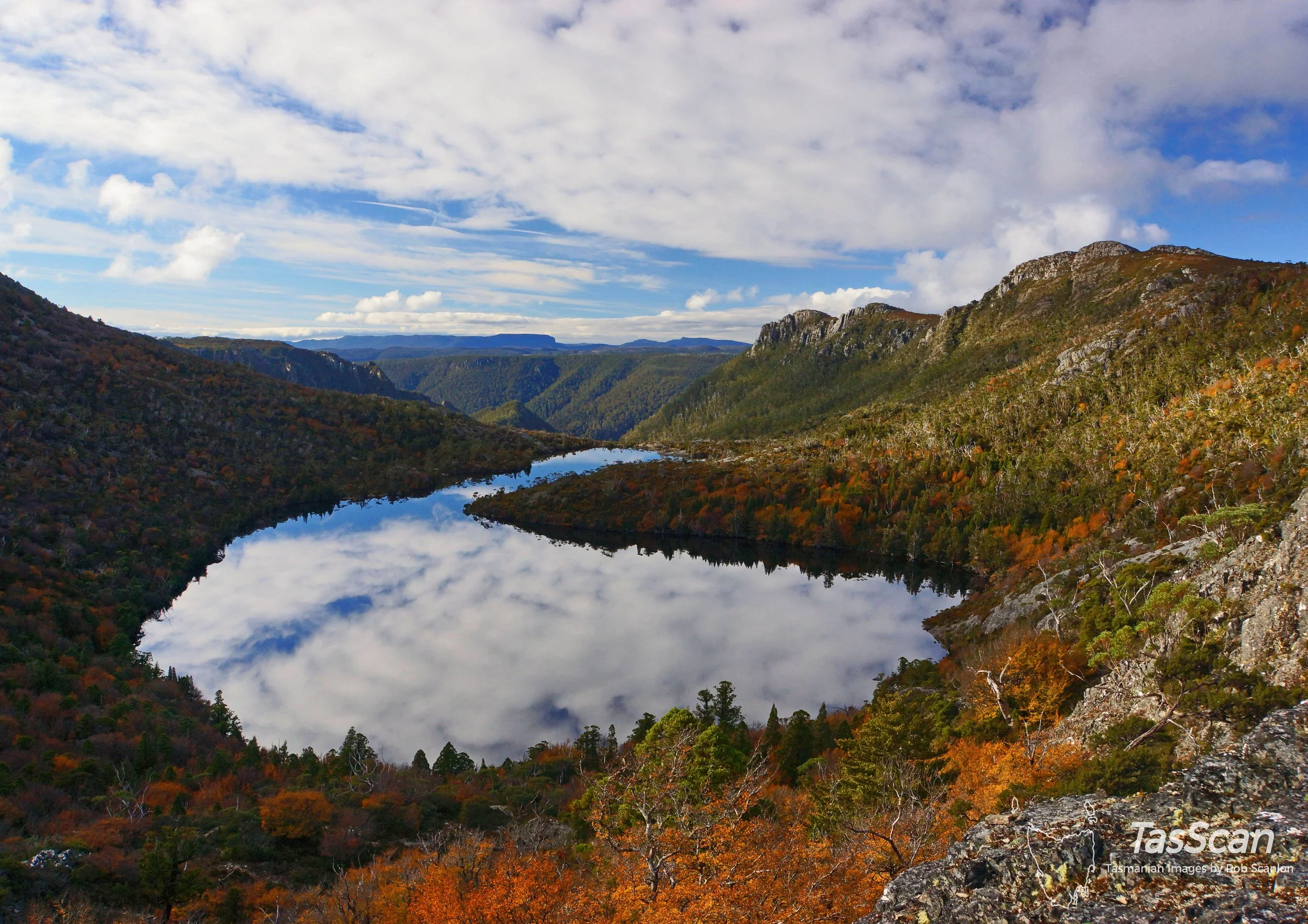 Stunning cloud reflections in Hanson's Lake. Short but steep climb up from Dove Lake gives unparalleled views as you walk around to the face track under Cradle mountain.
